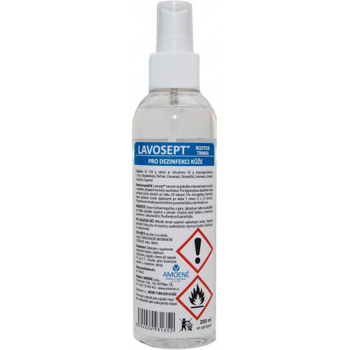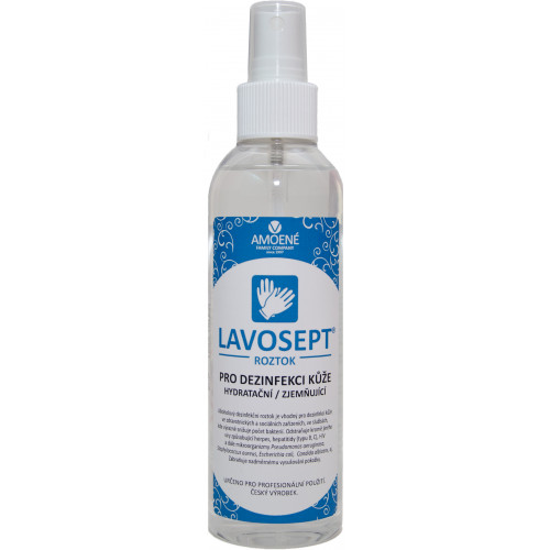 Alkoholový dezinfekčný prípravok Lavosept vo forme roztoku, obsahuje zjemňujúce a hydratačné prísady, ktoré zabraňujú vysúšaniu a podráždeniu pokožky.